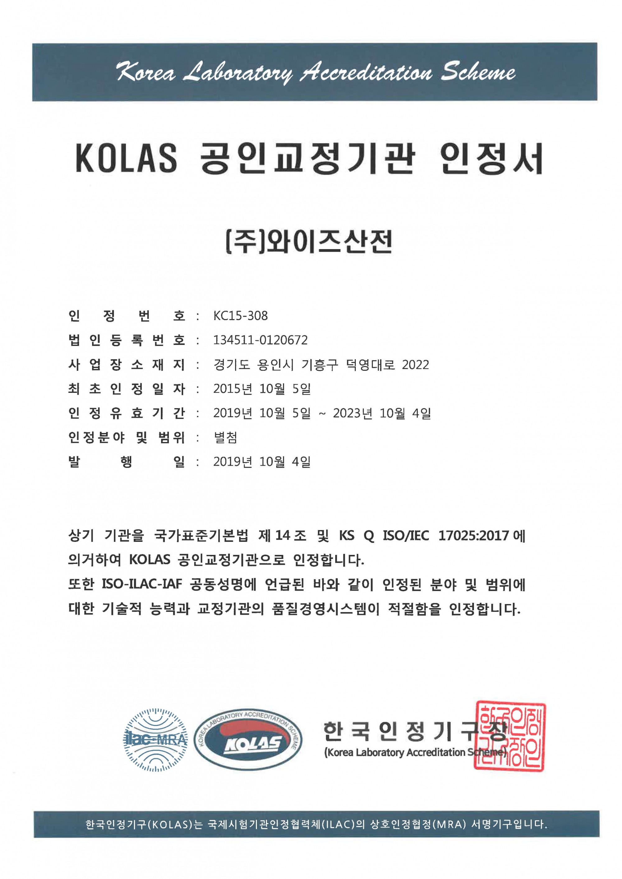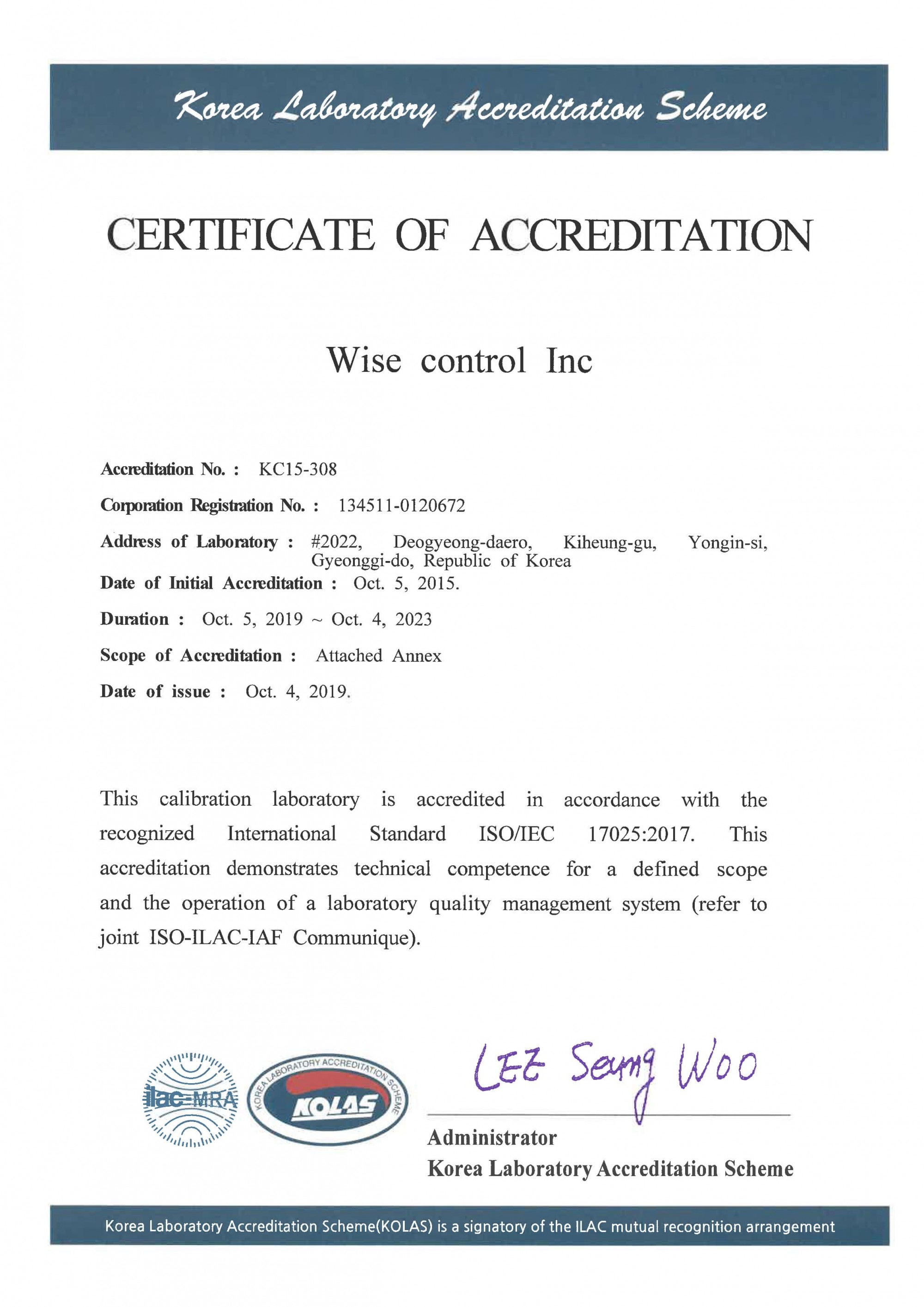 WISE Control Inc. was established in 1964, and became the first process control instrument manufacturer who acquired the certificate of KOLAS (Korea Laboratory Accreditation Scheme). WISE Control is currently operating the calibration lab inside the company, and it is being controlled according to KS Q ISO/IEC 17205 requirements. The main performance of the lab is to provide calibration services for pressure and temperature instruments.